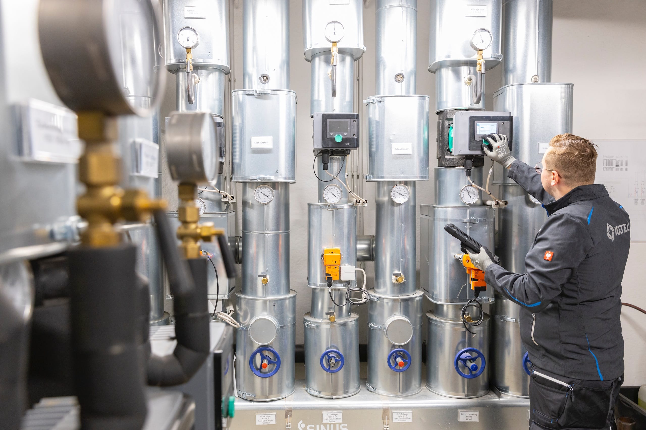 Techniker prüft industrielle Messgeräte und Anzeigen.